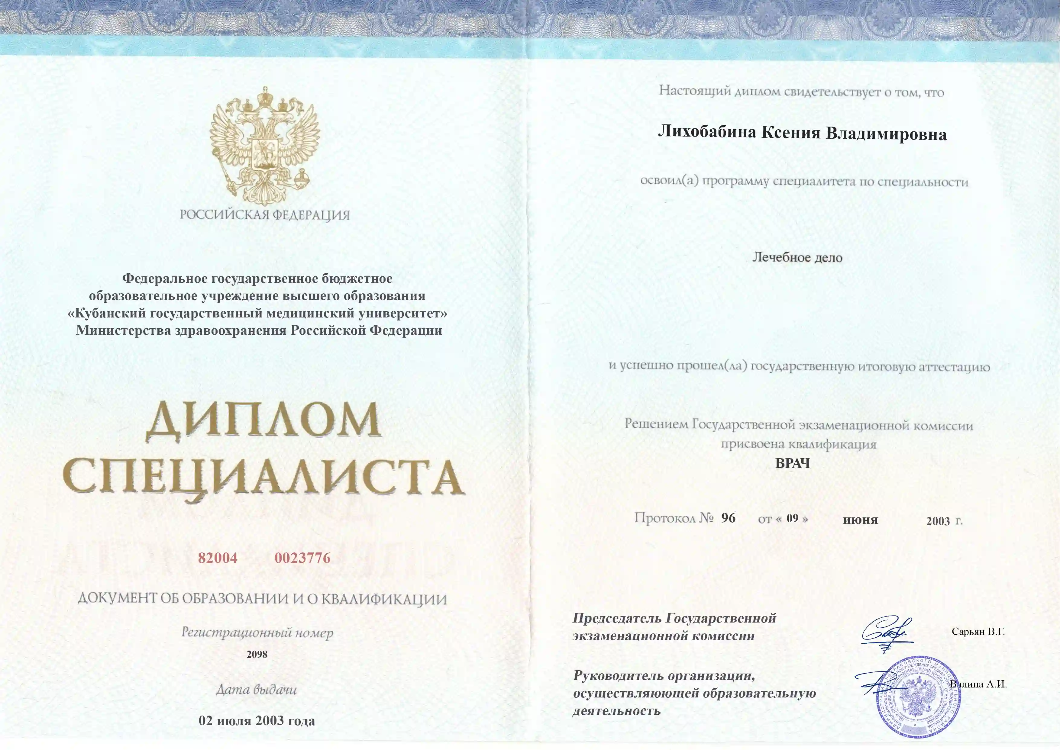 Получила образование в 2003 году по специальности «Лечебное дело» в Кубанском государственном медицинском университете. В 2009 году прошла переподготовку по психиатрии. В 2020 году получила сертификат специалиста по современным методам диагностики и лечения расстройств психики.